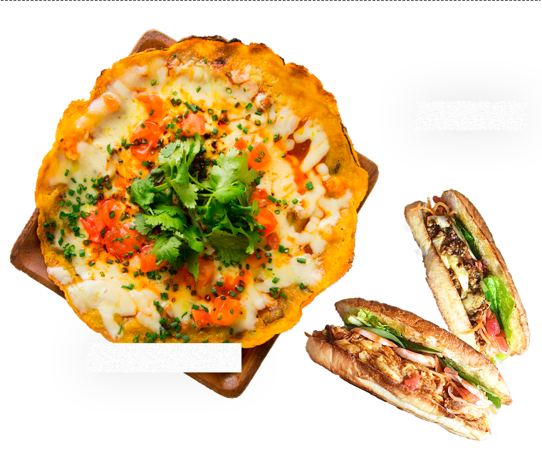 本格的なベトナム料理に、少しだけイタリアンなど西洋のテイストを取り入れています。バインセオの生地を使ったピザ、”バインセオピザ”や、ベトナムのサンドイッチ、バインミーにはバーベキューチキンやガパオタコスチーズといった具を挟みオリジナルに仕上げています!
