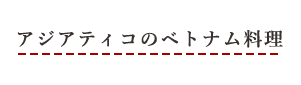 当店の料理は、数多くの調味料や食材を使って当店ならではの味に仕上げています。本場の味に近いものもあれば、創作度の高いものも。そんな「アジアティコでこそ味わえるベトナム料理」の数々をぜひ一度ご賞味ください。